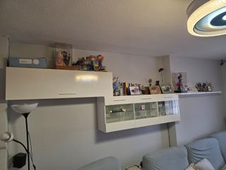Por mudanza, se vende este conjunto de muebles de salon. El mueble de TV, serie BRIMNES de IKEA, por 50€, menos de la mitad de su precio y está como NUEVO, no tiene marcas de nada, impoluto. Los otros que se ven colgados y la estanteria, por 100€ todo (costaron mas de 200€). Si te llevas todo, 130€. No puedo enviar nada, hay que venir a llevarselo a la vivienda. Importante: no puedo entregarlo hasta pasados unos dias cuando termine la mudanza.