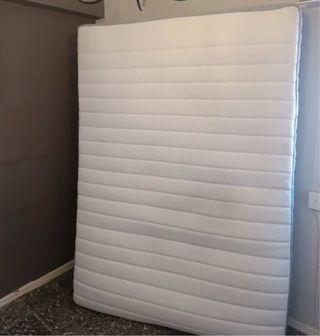 Colchón de la marca Ikea, modelo Mauranger, de 135 cm de ancho. Su diseño es moderno y se adapta a cualquier estilo de habitación. - Tejido exterior de alta calidad. - Costuras reforzadas para mayor durabilidad. -Dureza 4 sobre 6 - Tiene algunas manchas del uso - A recoger en colmenarejo.