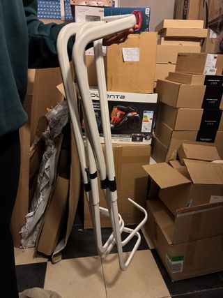 Soporte para colgar la plancha. A estrenar, sin uso - Fabricado en metal. - Color plateado.