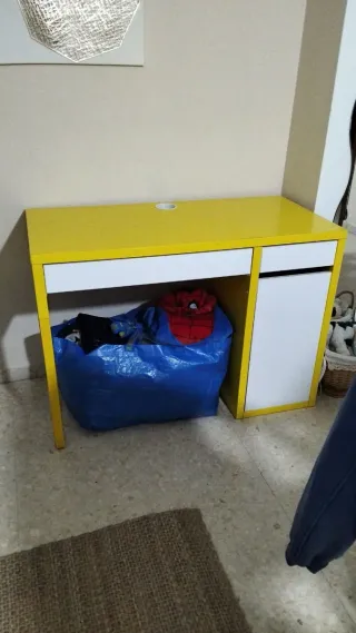 Leer la descripción completa porfa. Mueble de escritorio con un diseño moderno y funcional. -con una puerta y 3 huecos y 2 cajones. - Combinación de colores blanco y amarillo. - Estructura principal de plástico y madera. Tienes la parte de arriba con algunos rasguños,pero con un papel adhesivo del.color que deseequedaria perfecto,de ahí si precio.