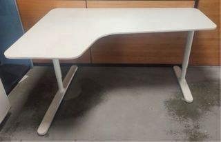 Mesa de escritorio en forma de L de Ikea. Modelo Benkant. La forma en L es como la foto. Se entrega desmontada para facilitar el transporte. Color BLANCO - Tablero de madera con acabado blanco. - Patas metálicas blancas. - Diseño moderno y funcional. - medidas 160x110.