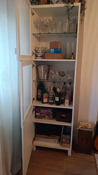 Mueble de salón blanco de la serie Besta de Ikea. Diseño moderno y funcional. - Medidas totales 203x62x42 cm (con patas y puertas). - Puertas de cristal Glassvik. - Puerta baja Laxvinen blanco. - Estructura de madera. - Patas incluidas. Perfecto estado. - Estantes de madera y cristal incluidos. Estado impecable, blanco de origen no amarillo. Ayudamos con desmontaje y carga.