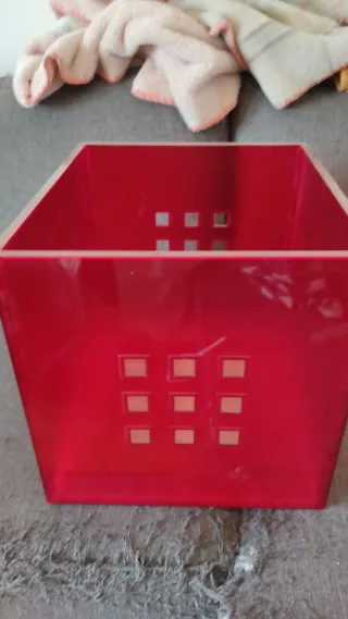 Práctico cajón contenedor de la marca Ikea. Su diseño moderno y color vibrante lo hacen ideal para organizar cualquier espacio. - Fabricado en plástico resistente. - Diseño con pequeños cuadrados calados en los laterales.