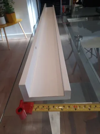 Estante de pared modelo Ribba de Ikea. - Color blanco. - Mide 115 cm de largo. - 10cm de ancho Ideal para poner cuadros o si lo pones del revés sobre un radiador