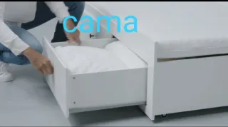 Cama nido de madera en color blanco. Un mueble funcional y elegante. HEMNES Estructura diván con 3 cajones, blanco, - Diseño moderno. - 3 Cajones inferior para almacenaje. Es una cama de 80 CMS que se puede extender a 160 CMS . Nueva vale 329€ SIN colchones . Los colchones , ambos 180€ Total nuevo: 500€ No tiene ni un roce ni desperfecto alguno. Es una cama de segunda residencia, no se ha usado ni 60 noches, se retira para colocar dos camas individuales.