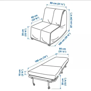 Sillón cama plegable de la marca IKEA, modelo Lycksale. Es una pieza versátil que se adapta a diferentes espacios. - Diseño moderno y funcional. - Funda de tela lavable.