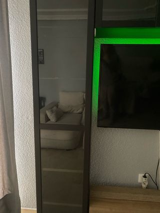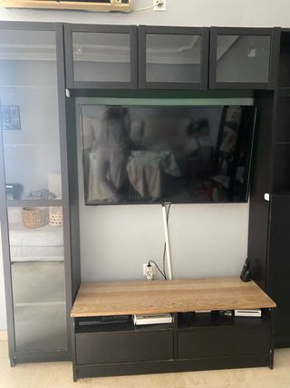 2,75m ancho total 2,15m parte mas alta 42cm fondo mueble 53cm fondo mesa central LAS MEDIDAS DE FONDO ES CONTANDO CON EL PLINTO DEL SUELO Prácticamente nuevo ni un araño visible se puede ver sin compromiso, Quien lo compre tiene que venir a desmontarlo y yo le ayudo, Mueble de salón con diseño moderno y funcional. - Estructura principal de madera. - Puertas y estantes de cristal. - Amplio espacio de almacenamiento con cajones. Habitacion salon cuarto cocina casa chalet piso adosado entrada cama baul mesa sofa mesita de noche tv television estanteria ropero nido baño mueble madera ikea matrimonio infantil sala de estar