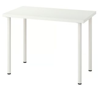 Escritorio moderno de IKEA con cajón y armario, ideales para almacenamiento. Está en buen estado, con algunas señales de uso que se pueden ver en la foto. **Solo para recoger**