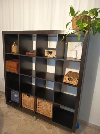 Estantería modular de Ikea en color negro y marrón. Cuenta con varios compartimentos para organizar tus objetos. - Estructura de madera.