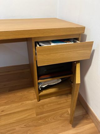 Escritorio de madera de diseño moderno de Ikea. - Amplia superficie de trabajo. - Cajonera integrada para almacenamiento. - Patas robustas para mayor estabilidad. -no envío este producto solo recogida en Esplugues de Llobregat .
