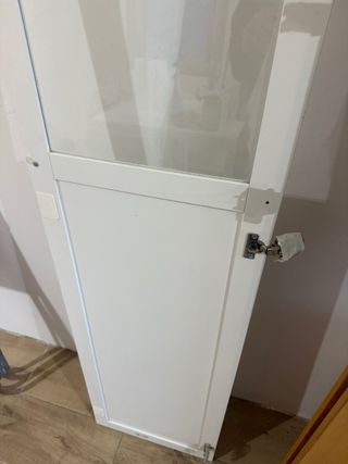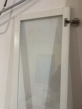 Puerta para armario Billy de IKEA, modelo OXBERG. Medidas 40x192. Con bisagras. - Marco de madera blanco. - Panel superior de cristal. - Panel inferior de madera blanca.