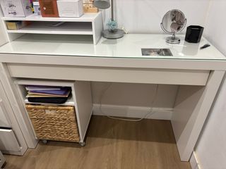 Tocador Malm de Ikea en color blanco con vidrio protector superior. Un mueble elegante y funcional para tu espacio. - Diseño moderno y minimalista. - Amplia superficie. - Cajón espacioso para almacenamiento. Precio final, no negociable.