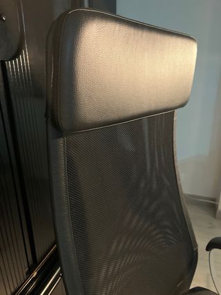 Silla de escritorio de Ikea, cómoda y con un diseño moderno. - Respaldo alto con malla transpirable. - Asiento acolchado. - Reposabrazos. - Base giratoria con ruedas.