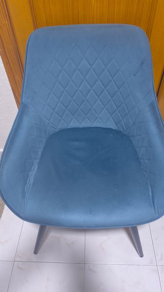 Conjunto de dos sillas tapizadas en terciopelo con un diseño moderno y elegante. - Acabado acolchado con patrón de rombos. - Patas metálicas resistentes.