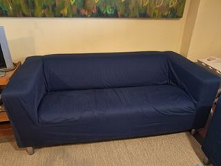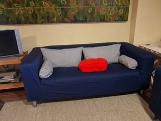 Sofá Klippan de Ikea con fundas intercambiables - Funda de color azul. Se vende sin almohadones pero regalo funda roja - Funda adicional de color rojo.
