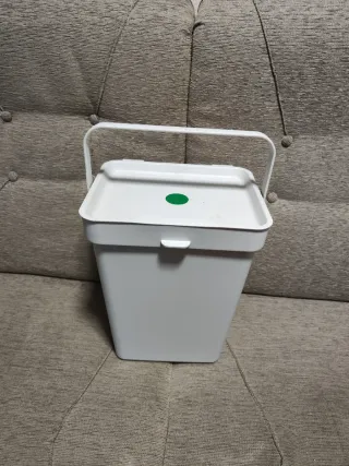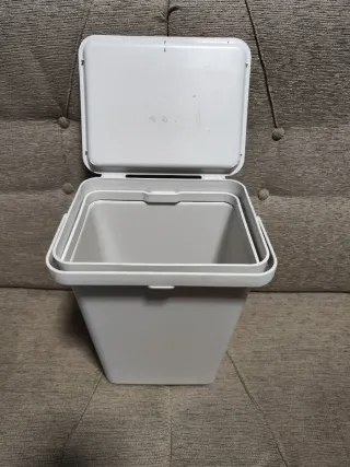Papelera de plástico de Ikea con tapa. - Diseño cuadrado. - Color blanco.