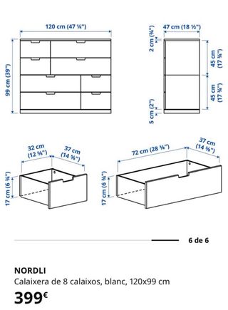 Vendo Cómoda KOPPANG de IKEA con seis cajones por cambio a una mas pequeña. - Medidas: 172 cm de ancho, 83 cm de alto y 44 cm de profundidad. - Profundidad del cajón: 39 cm. - Altura de las patas: 11 cm.