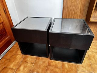 2 Mesitas Noche IKEA Cristal Madera Negras