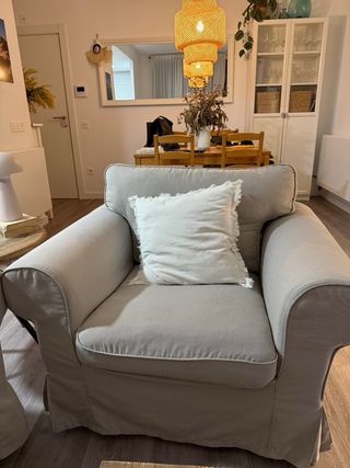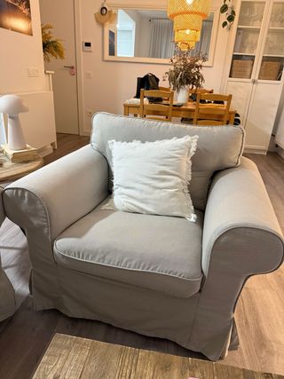 Cómodo sillón EKTORP de IKEA, perfecto para tu salón. - Tapicería de tela. - Estructura de madera. Lo vendo por mudanza. Nuevo cuesta aprox. 369€. También tengo el sofá de 3 plazas a juego, lo venderé en los próximos meses.