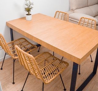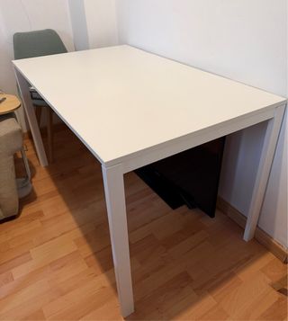 Mesa extensible de IKEA, de madera con patas negras. Ha sido usada durante 2 años y se encuentra en buen estado, con solo un pequeño golpe poco visible. Su precio original en IKEA fue de 500 €. Ideal para comedor o salón, ya que al ser extensible permite adaptarse fácilmente cuando necesitas más espacio.