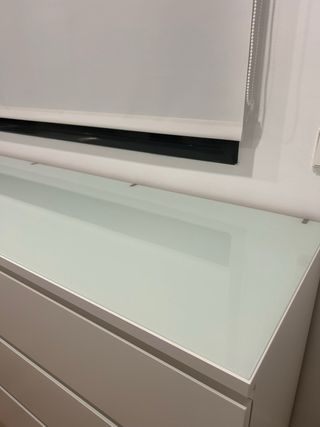 Tablero de vidrio con un diseño moderno y elegante, perfecto para añadir un toque de estilo a tu hogar. Sus dimensiones son 160x48 cm. - Acabado transparente con un sutil tono verde agua. - Superficie lisa y fácil de limpiar. - Compatible con cómoda Malm.