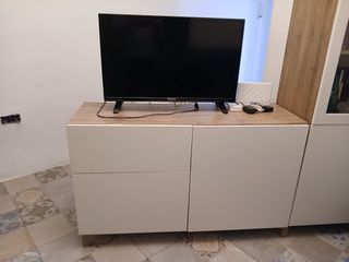 Vendo mueble de TV IKEA serie BESTÅ (modelo antiguo/descatalogado) en buen estado. Diseño moderno y funcional, estructura marrón oscuro con 2 cajones blancos amplios, y 2 huecos abiertos ideales para consolas, router o decodificador. Mueble sólido, estable y bien cuidado; los cajones funcionan bien,pero tienen un ligero hundimiento en la tabla inferior (visible en fotos). Alguna marca mínima del uso normal, nada relevante. 📐 Medidas aprox.: 130×58×45 cm. 💶 Precio original IKEA: 200€. 📍 Recogida en mano en Jerez de la Frontera. 💬 Escucho ofertas razonables.