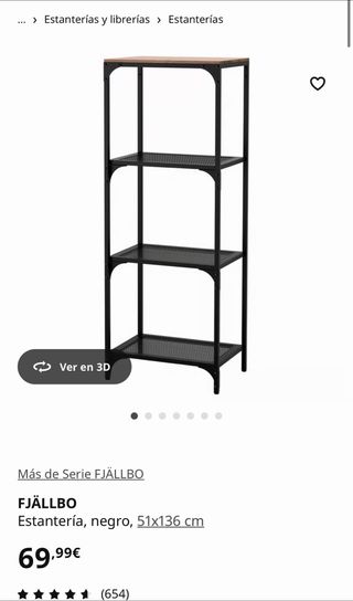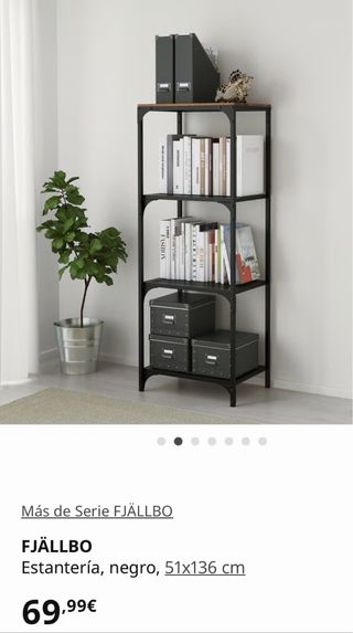 Estantería FJÄLLBO de IKEA con un diseño moderno y funcional, ideal para una decoración de estilo rústico. El metal le da un aire industrial, mientras que la madera maciza le aporta exclusividad. - Estructura de metal negro. - Estantes de madera. - Medidas: 51x136 cm.