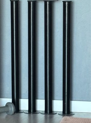 Conjunto de cuatro patas metálicas de color negro, originales de Ikea. Ideales para dar un toque moderno a tu mesa. a - Diseño cilíndrico. - Base plana para fácil fijación. Altura 70cm. no se alargan