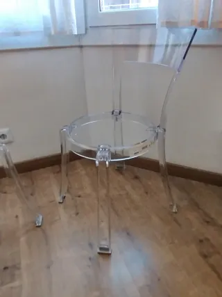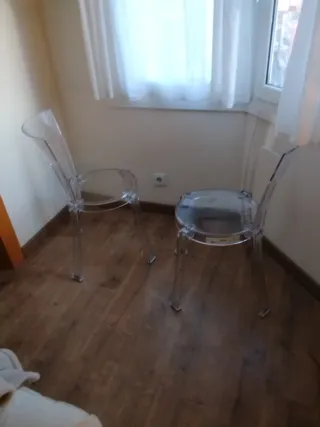 Conjunto de dos sillas transparentes modelo STEIN de IKEA. Su diseño moderno y minimalista las hace perfectas para cualquier espacio. - Material: Plástico resistente. - Color: Transparente.