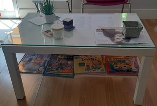 Mesa de estudio moderna y funcional con un diseño limpio. - Acabado en color blanco. - Incorpora un cajón para almacenamiento. - Patas resistentes. -con cristal comprado aparte a medida