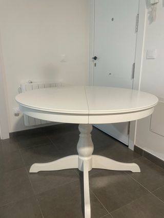 Mesa redonda extensible de IKEA, ideal para tu comedor o cocina. Amplía su tamaño de 110 cm a 155 cm. Solo tiene un año está prácticamente nueva. NO SE HACEN ENVÍOS - Diseño moderno y funcional. - Base robusta de cuatro patas.
