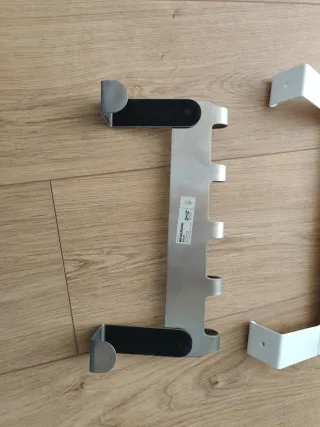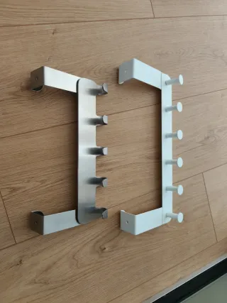 Dos percheros de puerta de la marca Ikea, uno en acabado plateado y otro en blanco. Son ideales para colgar abrigos, bolsos o toallas sin necesidad de taladrar. - Perchero plateado de metal. - Perchero blanco de metal