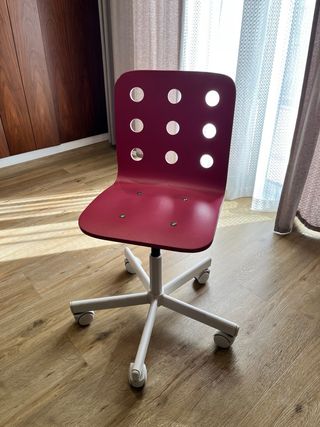 Silla de oficina modelo Skalberg de Ikea. Su diseño moderno y funcional la hace ideal para cualquier espacio de trabajo. - Asiento y respaldo perforados para mayor transpirabilidad. - Base con ruedas para facilitar el movimiento. - Altura ajustable para mayor comodidad.