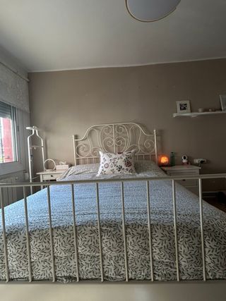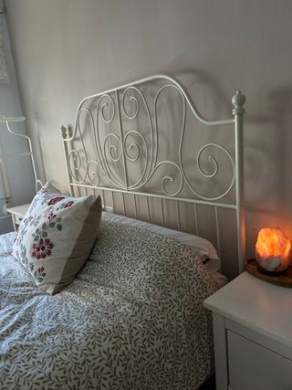 Estructura de cama modelo LEIRVIK de Ikea, con un diseño elegante y moderno. - Tamaño: 140x200 cm. - Acabado en metal blanco.