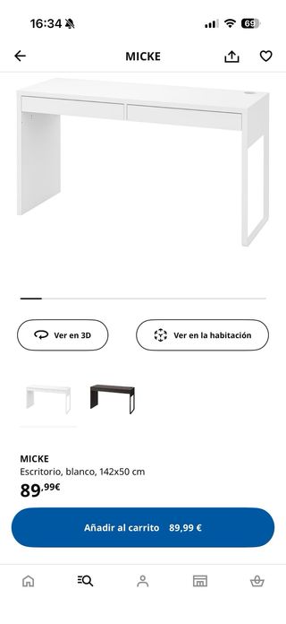 Escritorio de Ikea en color blanco, con un diseño moderno y funcional. Presenta algunos signos de uso. - Medidas generales: 105 cm (ancho) x 50 cm (profundidad) x 75 cm (alto). - Cajón grande: 62 cm x 36 cm x 6 cm. - Cajón pequeño: 24 cm x 36 cm x 6 cm. - Compartimento lateral: 27 cm x 16 cm x 28 cm.