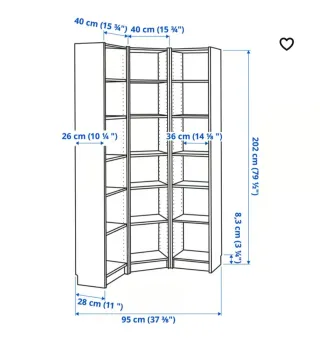Estantería de esquina Billy de Ikea en acabado marrón oscuro, ya montadas. Actualmente descatalogada en la web de IKEA. Con sus enganches. Lo único que tienen es polvo. Están nuevas.