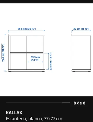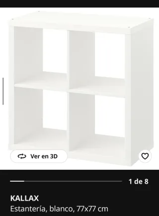 Estantería Kallax de Ikea en color blanco. Un mueble versátil y práctico para organizar tus espacios. - Diseño modular con 4 compartimentos. - Acabado liso y fácil de limpiar.