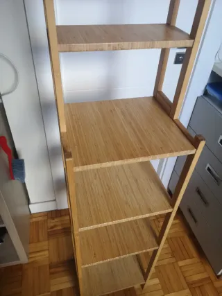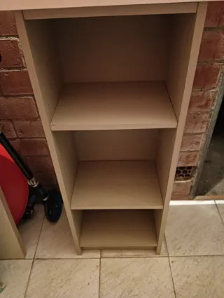 Se venden dos muebles tipo estantería de Ikea. Son de madera y color beige. - Diseño sencillo y funcional. - Perfectos para organizar libros o decoración.