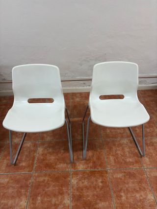Conjunto de dos sillas de diseño moderno de Ikea. - Asiento y respaldo de plástico. - Patas metálicas resistentes.