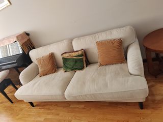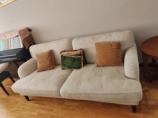 Sofá de tres plazas de Ikea, en color beige y prácticamente nuevo. Su diseño moderno se adapta a cualquier estancia. - Tapicería de tela. - Estructura de madera.