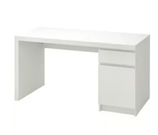 Mesa de escritorio MALM de Ikea. Un diseño moderno y funcional para tu espacio de trabajo o estudio. - Amplia superficie. - Cajón integrado para almacenamiento y puerta. - Patas robustas.