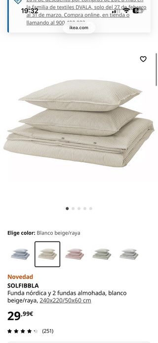 Nórdico de IKEA, nuevo a estrenar y sin su embalaje original junto con funda nórdico rayas beig. Se venden las dos cosas por 70e o por separado 60e el nórdico 20e las sabanas. Compramos todo el sábado, estamos a martes, hemos ido a devolverlo y no nos dejan por que no tienen las etiquetas.No se ha usado nada solo se ha probado encima de la cama.
