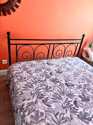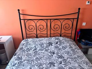 Estructura de cama de matrimonio con un diseño elegante y moderno. Combina la resistencia del metal con un estilo único. 200 x 160 Cabecero de forja - Acabado en color negro. - Detalles decorativos en espiral. - incluye colchon 1,60 - Ikea