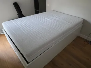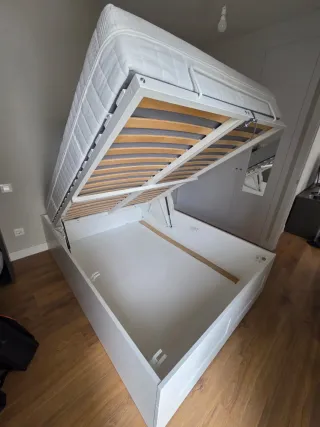 Se vende cama Brimnes de 140x200 cm con colchón incluido. La estructura de la cama cuenta con dos cajones grandes para almacenamiento. - Cajones espaciosos. - Diseño moderno. Se puede vender por separado tambien A la cama le faltan 2 cajones de un lado El colchon solo tiene 1 año y muy poco uso