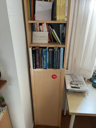 Práctica librería de IKEA, color haya, en buen estado. Ocho baldas, con puerta para las tres inferiores