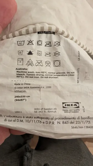 Relleno para nórdico cama grande de 240x220cm de Ikea modelo Sotvedel. Extra cálido Peso del relleno 1520gr 60% plumón de pato, 40% plumas de pato Recién lavado