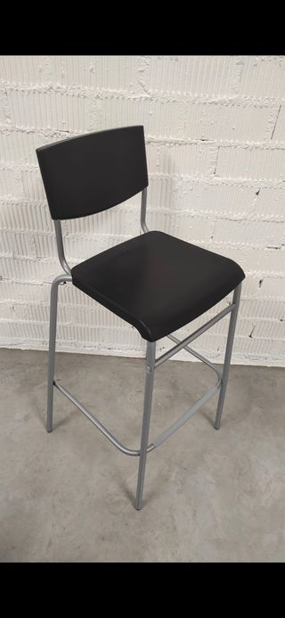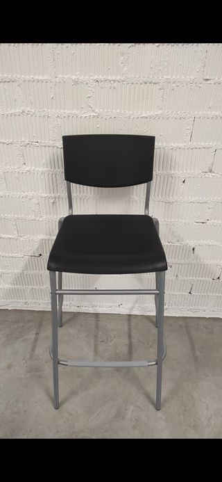 Conjunto de taburetes de diseño moderno. - Estructura metálica. - Asiento y respaldo en polipiel negra. 40 los 4, unidad suelta 15