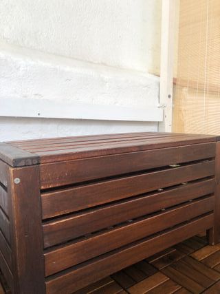 Bonito baúl de madera para exterior de Ikea. Ideal para almacenar cosas en tu jardín o terraza. - Buen estado de conservación. - Diseño sencillo y elegante.