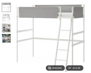Cama alta modelo VITVAL de Ikea, en buen estado. Es una litera estupenda para ahorrar y aprovechar espacio de debajo la cama. - Incluye la estructura completa de metal y tela. - Dispone de escalera integrada.