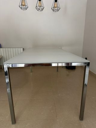 Elegante mesa de comedor con tablero d cristal y estructura de acero cromado. -Se recoge presencialmente -Zona Tarragona